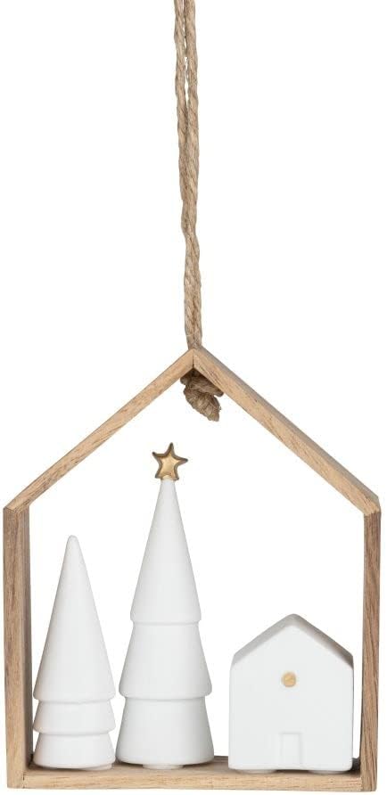 Dieses charmante Deko-Highlight von Räder Design vereint natürliche Materialien mit poetischem Design. Die Kombination aus Akazienholz und mattem Porzellan macht die Waldhütte zu einem besonderen Blickfang, der Wärme und Behaglichkeit ausstrahlt. Mit einer Größe von 9 x 11,5 cm und einer Aufhängung aus Sisalband lässt sich das Häuschen vielseitig dekorieren – ob am Weihnachtsbaum, am Fenster oder als Akzent im Adventsgesteck.