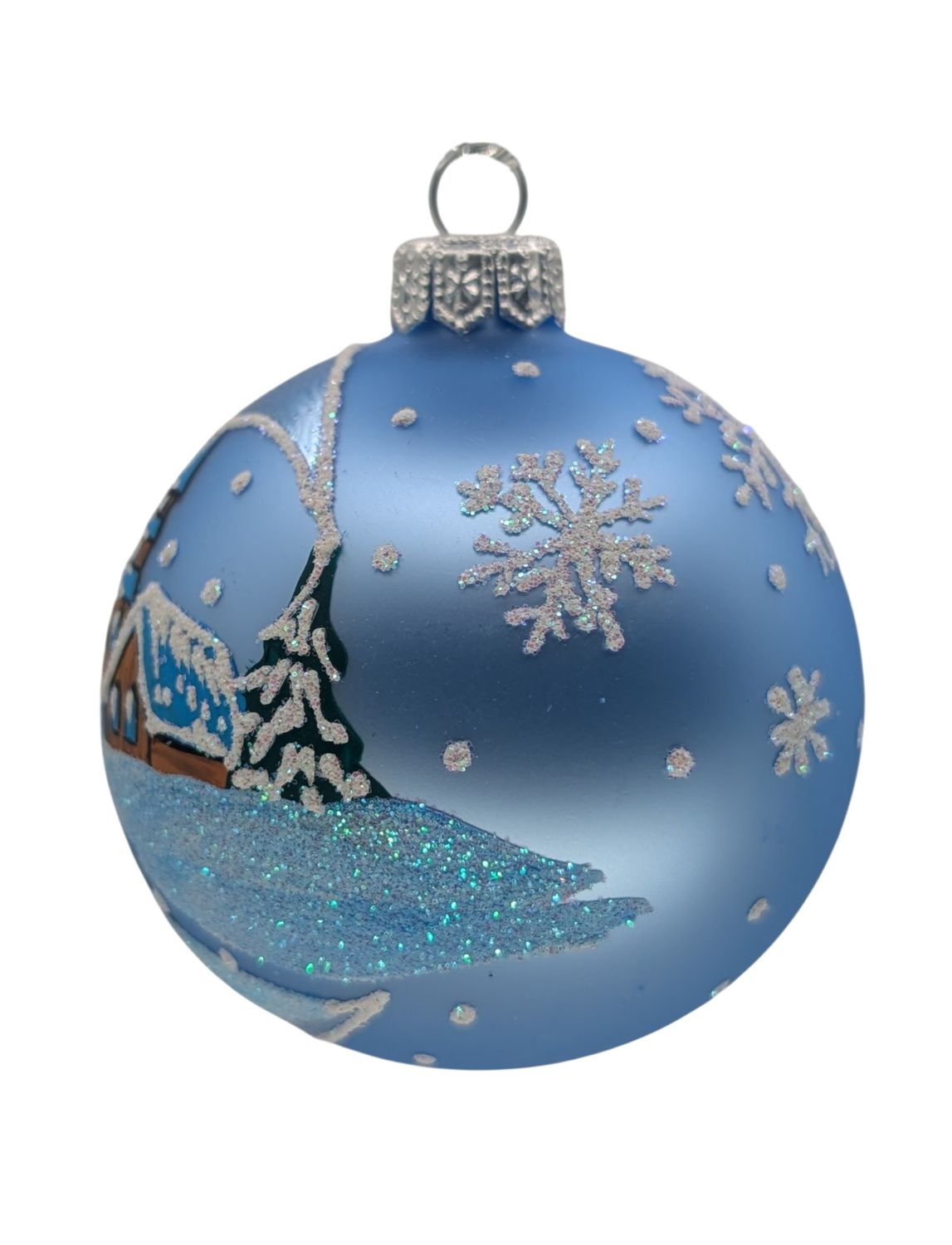 Christbaumkugel Dorf Winterlandschaft hellblau – Glas