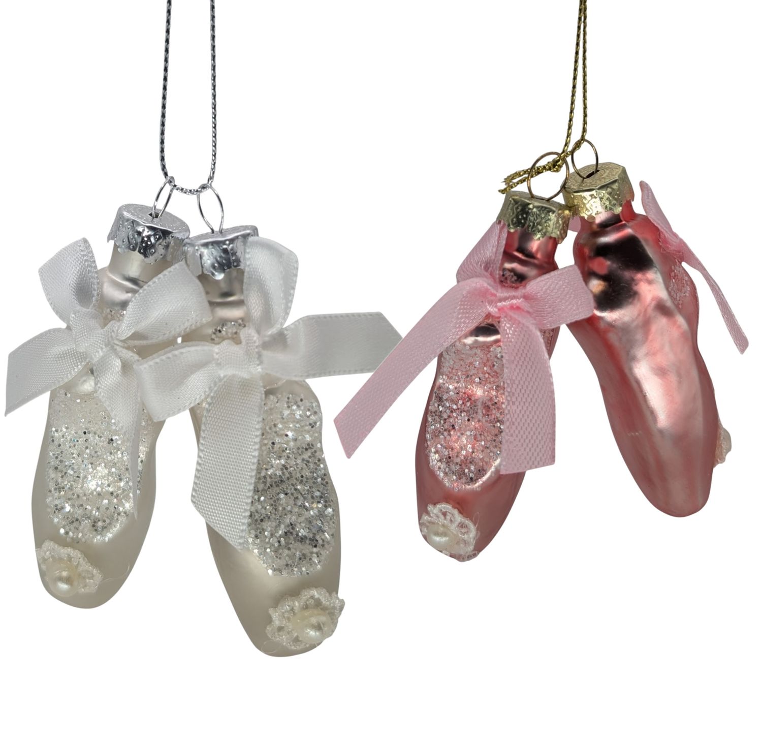 Die rosa und weiß-silbernen Ballettschuhe sind ein Symbol für Grazie, Leichtigkeit und Eleganz – und verwandeln deinen Weihnachtsbaum in eine Bühne für festliche Schönheit.