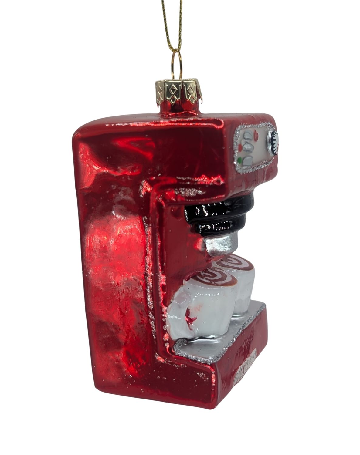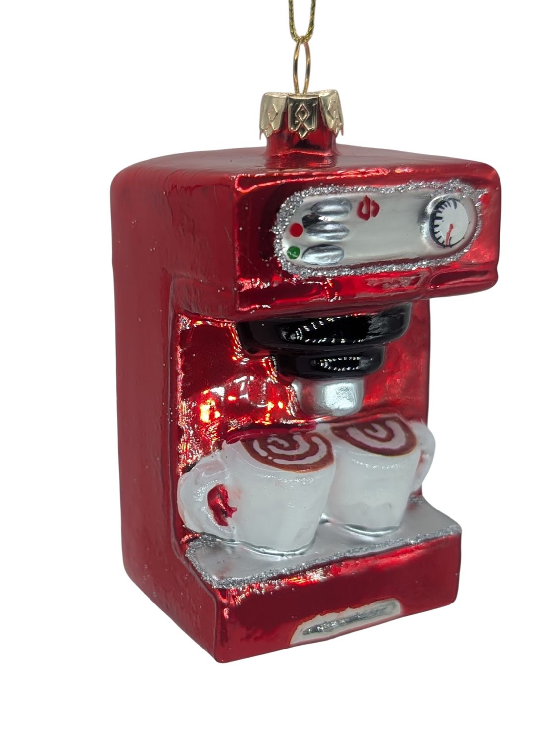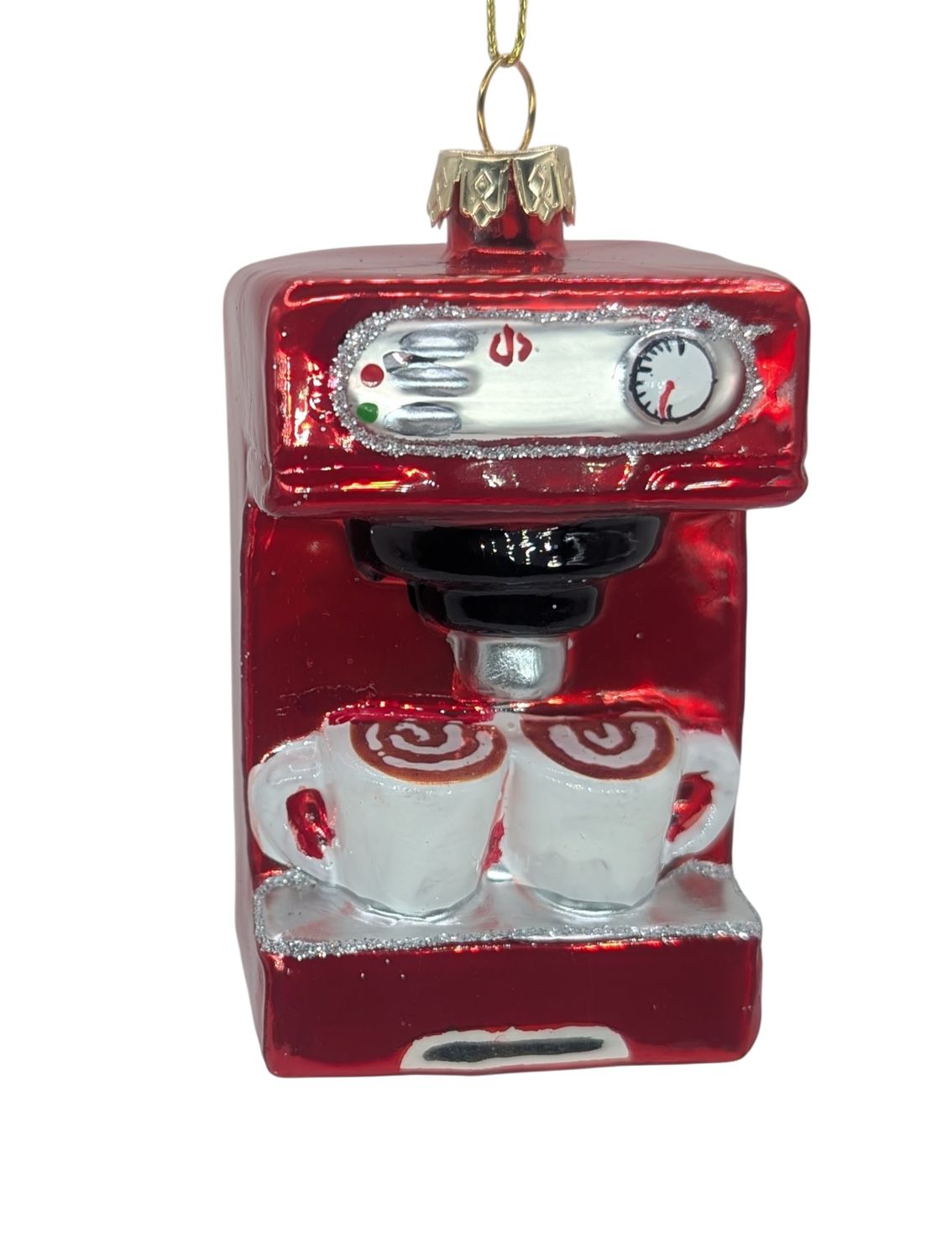 Der rote Espressomaschinen-Christbaumschmuck vereint Kaffeegenuss und Weihnachtsfreude in einem edlen Ornament – perfekt für alle, die den Duft von Espresso auch am Baum lieben.