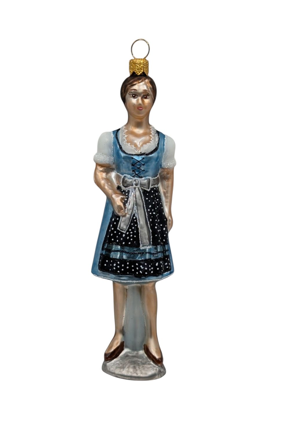 Tradition trifft Eleganz – der Christbaumschmuck „Frau mit Dirndlkleid kurz“.