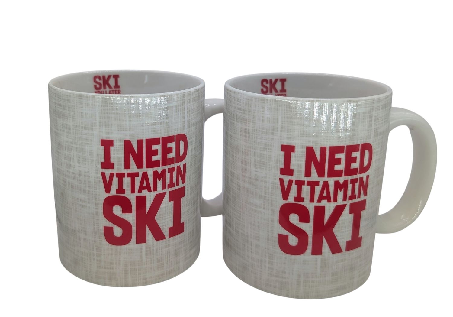 Dieses originelle 2er Set Wintertassen bringt nicht nur gute Laune, sondern auch echtes Ski-Feeling in deine Küche. Die robusten Keramiktassen zeigen auf der Außenseite den humorvollen Aufdruck „I need Vitamin Ski“ und auf der Innenseite den Spruch „Ski you later“ – perfekt für alle, die schon beim ersten Schluck an die Piste denken.