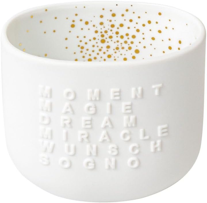 Dieser stilvolle Teelichthalter aus Porzellan begeistert mit einer feinen Prägung und einem eleganten goldenen Punkt, der als besonderer Blickfang wirkt. Mit einer Größe von 8,5 x 6 x 7 cm eignet er sich perfekt für kleine Teelichter und schafft eine warme, behagliche Atmosphäre in jedem Raum.